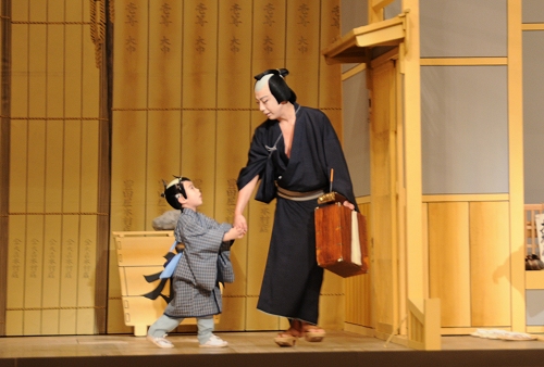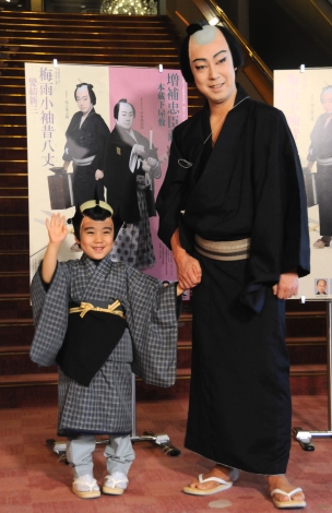 息子の和史も紙屋丁稚長松として出演させていただきます。初お目見得のときは、なかなか挨拶ができなかったりということもありましたが、今回はセリフもございますので、そういう意味では25日間しっかりと舞台を勤めてもらいたいと思います。そして、これからも機会がありましたら、一緒に舞台に出て“板の匂い”をなるべく身体に付けてもらいたいなと思っています。