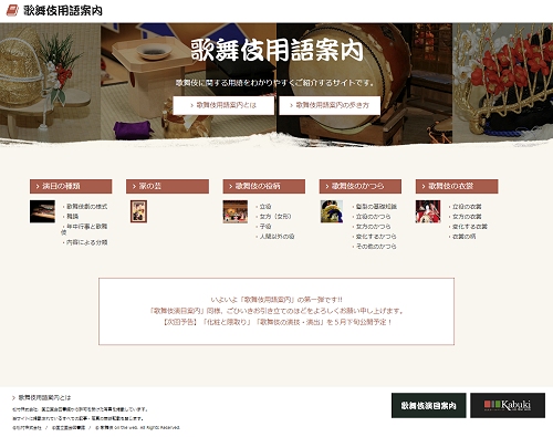 歌舞伎 on the web では、歌舞伎に関する用語をわかりやすく紹介する「