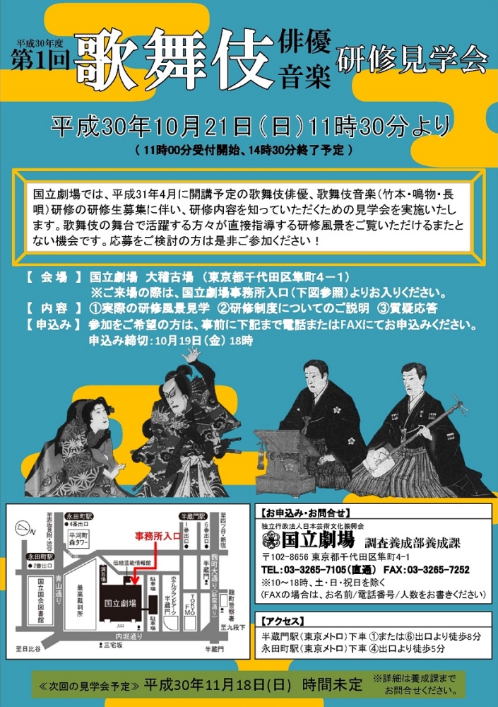 【第1回終了】国立劇場「第1回 歌舞伎 俳優 音楽 研修見学会」開催のお知らせ